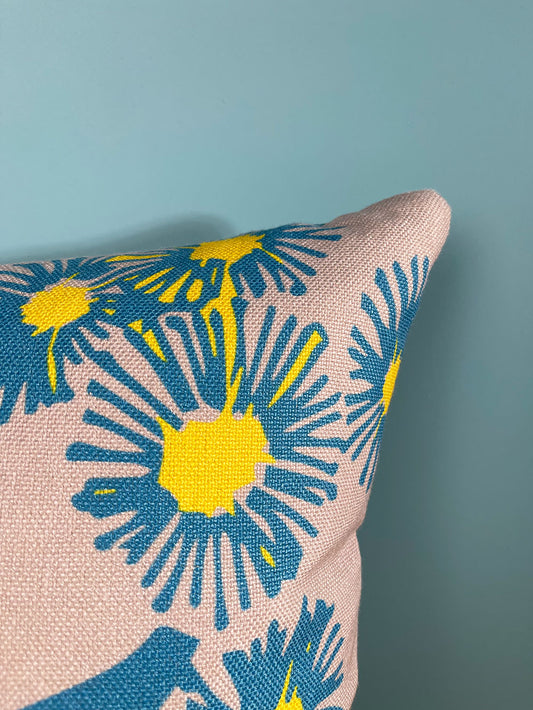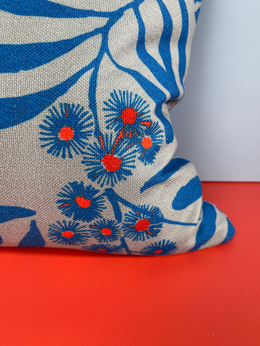 Wattle Blossom Cushion- Aqua Blue/Citrus