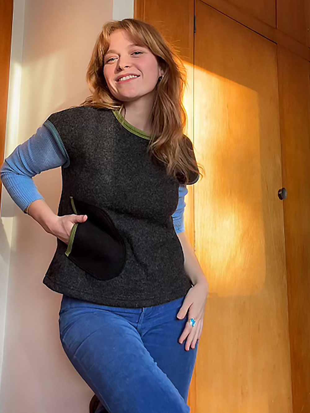Our beautiful boiled wool Cocoon Vests are here! You'll be super snug for winter.