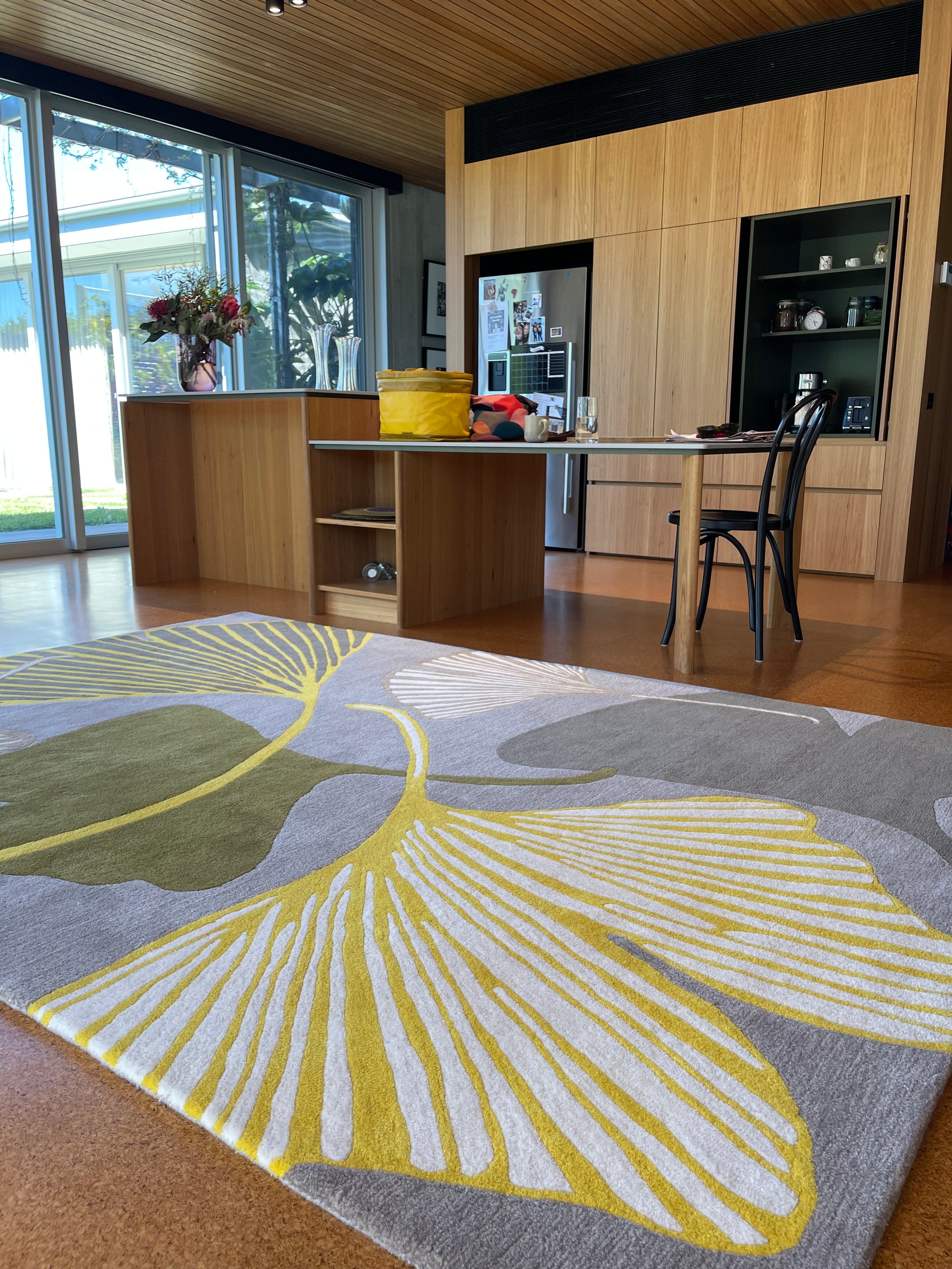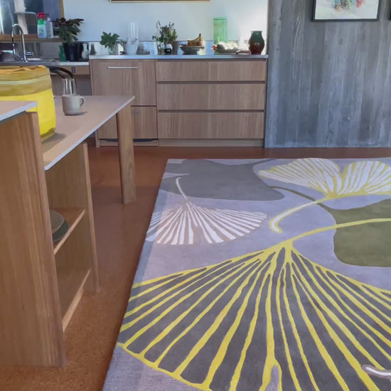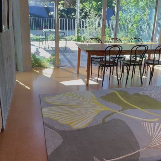 Our brand new Yellow Ginkgo floor rug is full of joy! Inspired by the ancient Chinese medicinal plant with a distinctive shaped leaf. The Ginkgo has always been a popular motif in art and design.